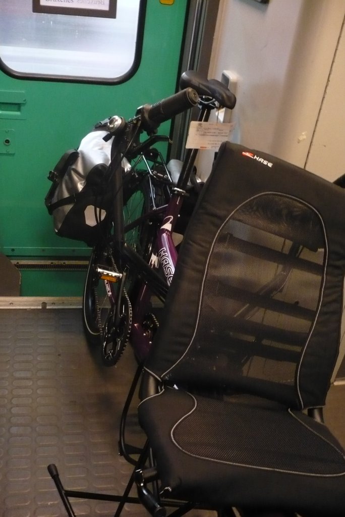 Notre Pino flambant neuf, il a moins de 2 km et déjà 3 Ortlieb sur le dos dans un train international!