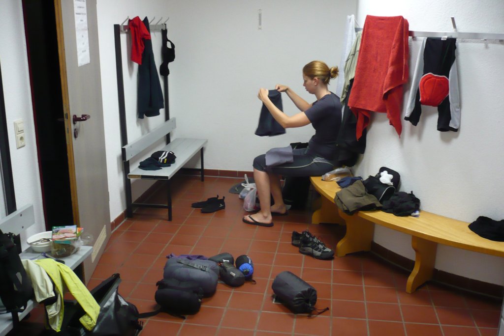 Notre chambre, le vestiaire des femmes du club de canoë (on a négocié pour dormir à l'intérieur).