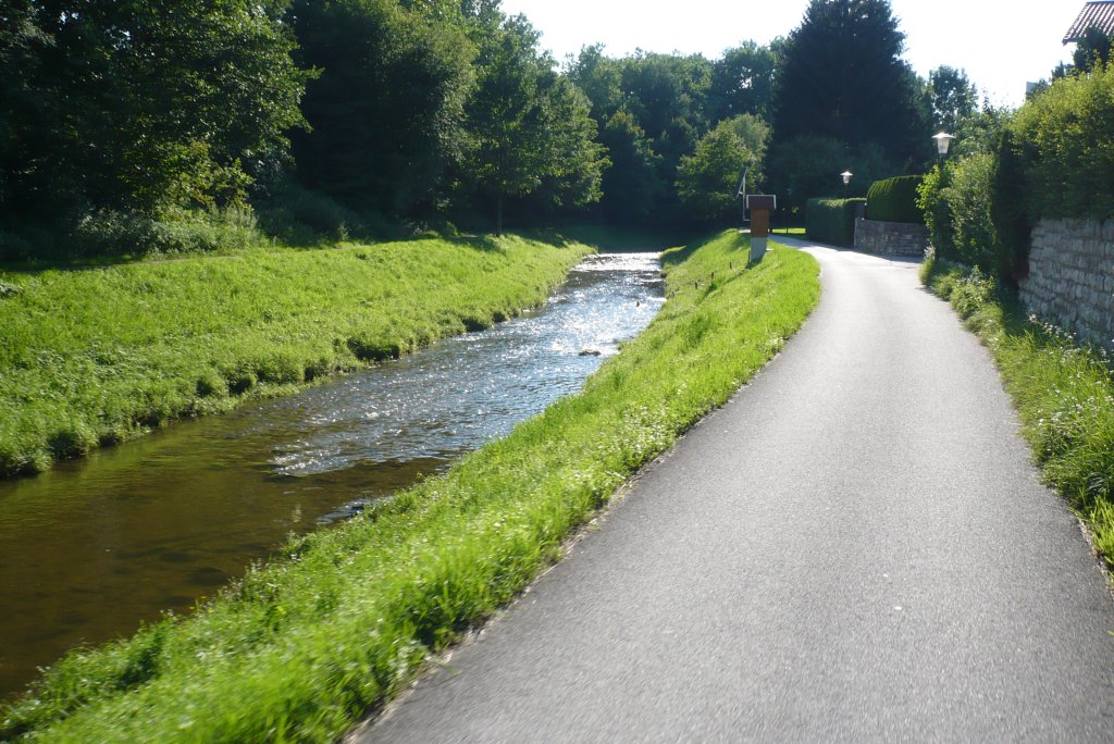 Le chouette petit chemin piétons/vélos qui nous mène à la Salzach en direction de ...