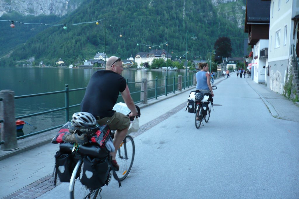 Rue principale de Hallstatt, village flanqué sur la montagne.