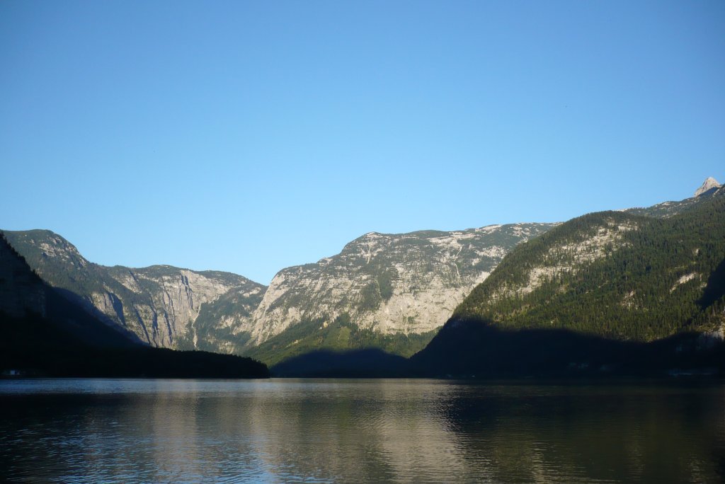 19h40, le soleil se couche en face d'Hallstatt.