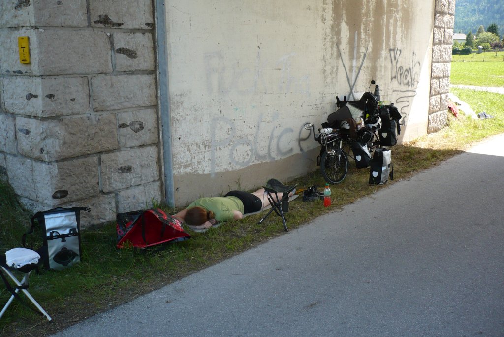 Breakdown d'Elodie! On en profite pour éviter la chaleur de midi.