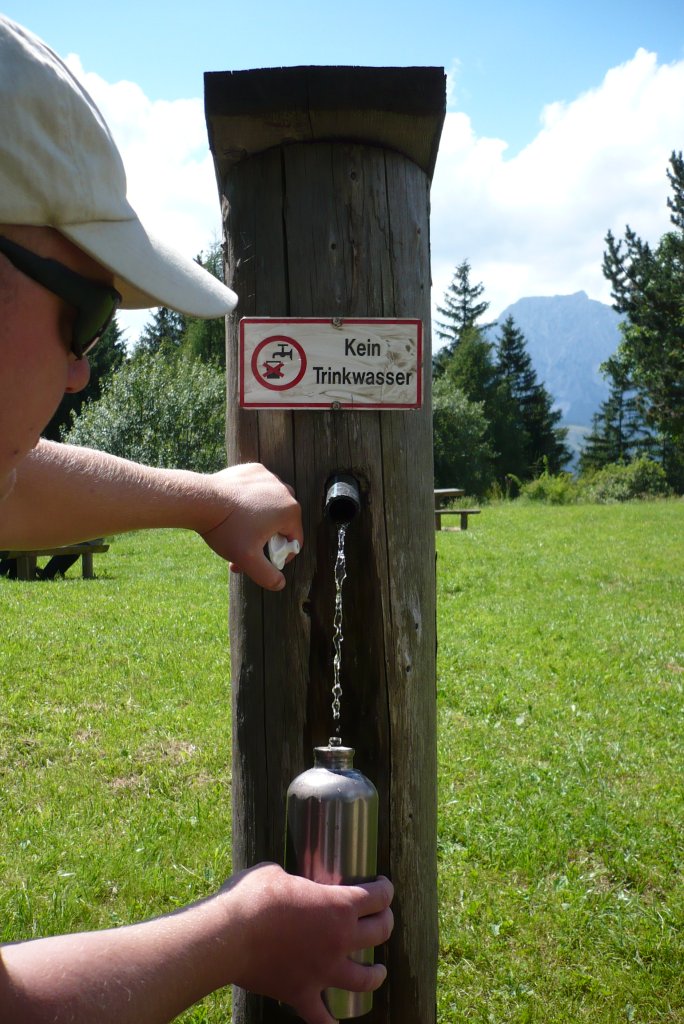 Non, il n'est pas fou, c'est juste que l'eau n'est pas vérifiée par l'institut machin-chose mais elle est potable d'après les locaux! Ça serait dommage de ne pas profiter de ce qui sort de la montagne en direct!