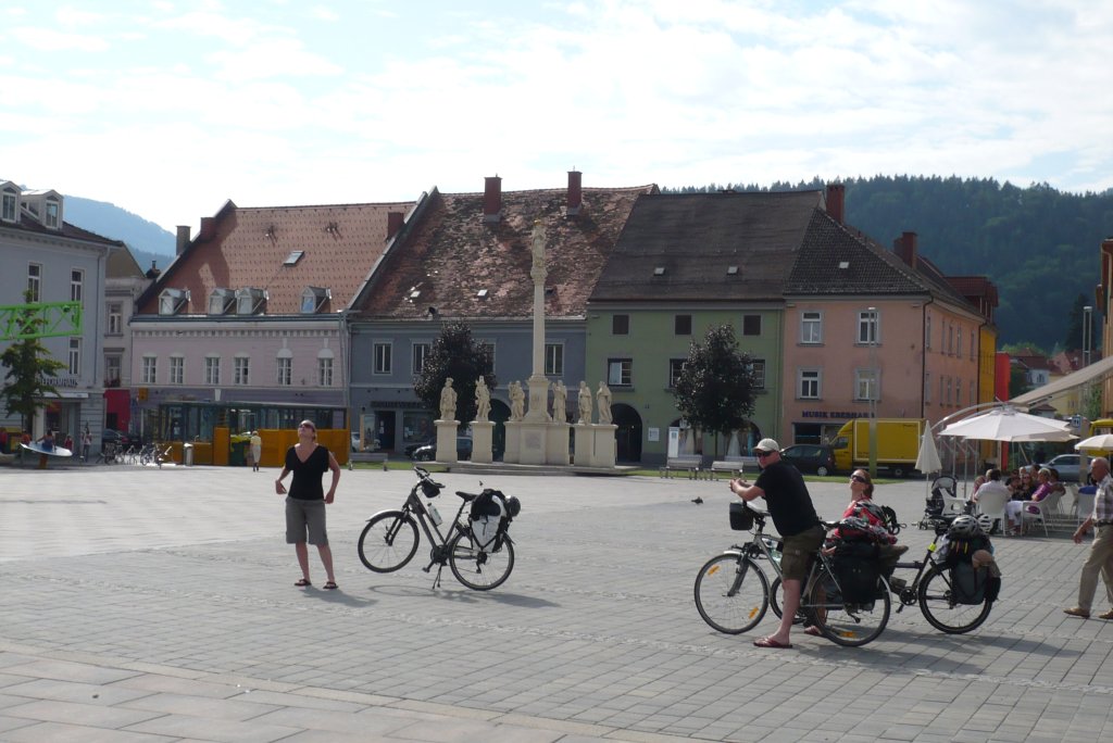 Quelques secondes de détente au soleil de la Rathausplatz de Bruck.