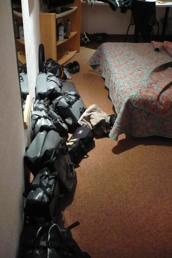 Une chambre Ibis envahie par deux cyclistes, ça donne ça!