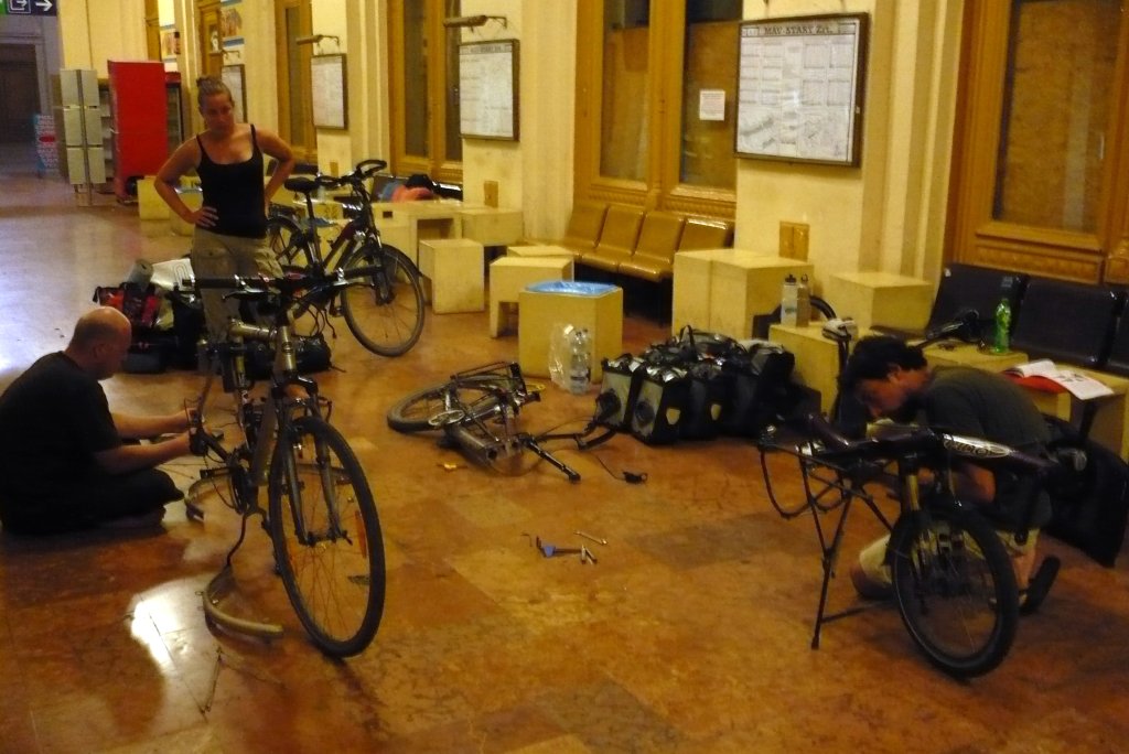 Démontage des vélos, c'est parti!